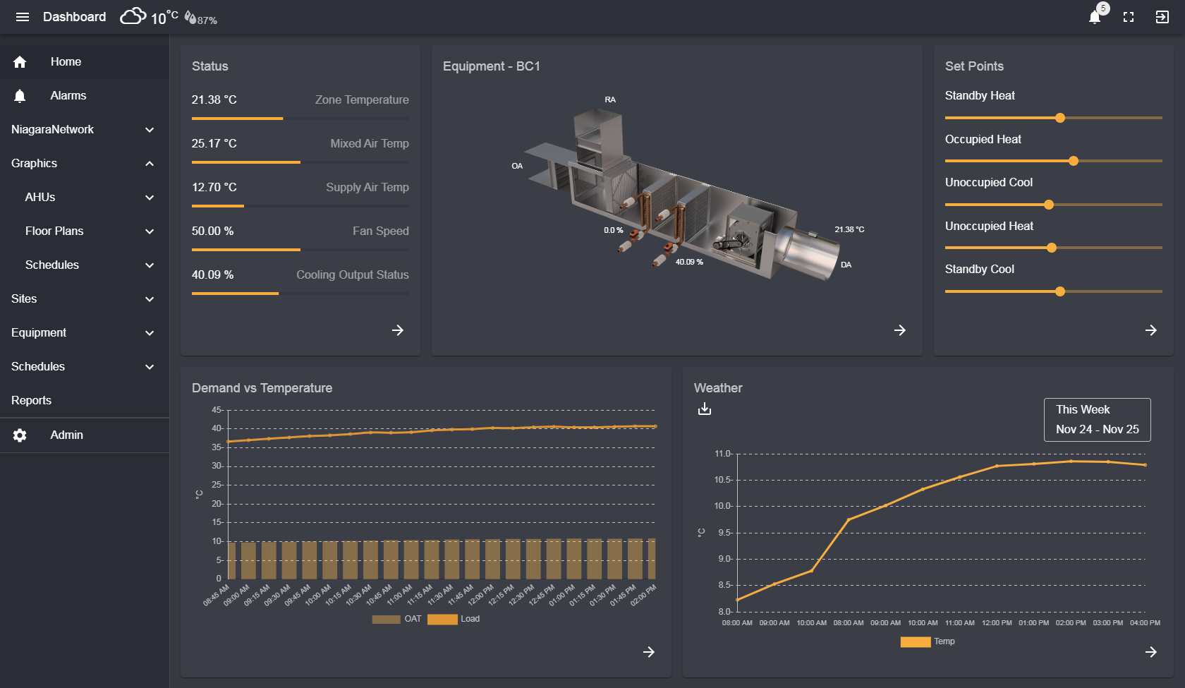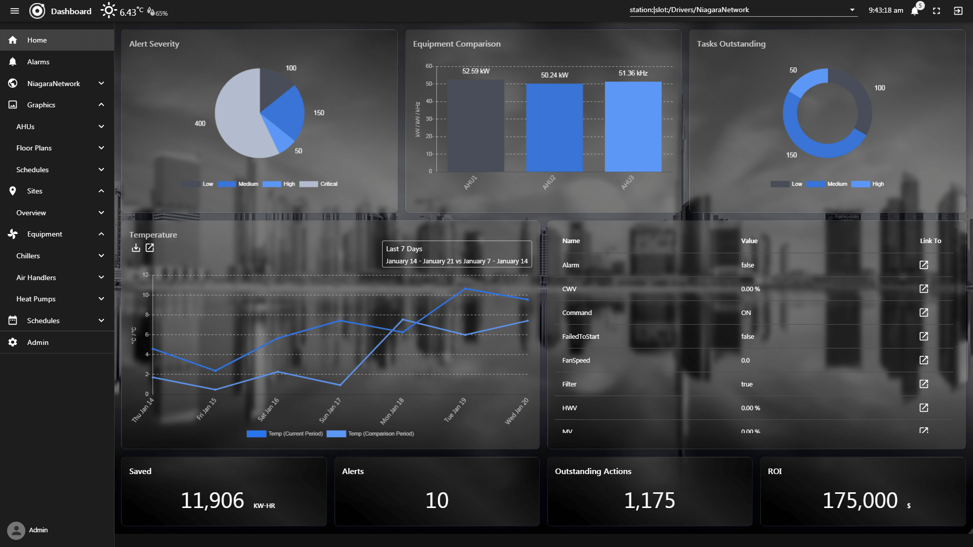 N4 Analytics - if you have created station analytics using algorithms and tagging, data can be plotted onto charts for analysis. Export data in CSV format to further analyze data.